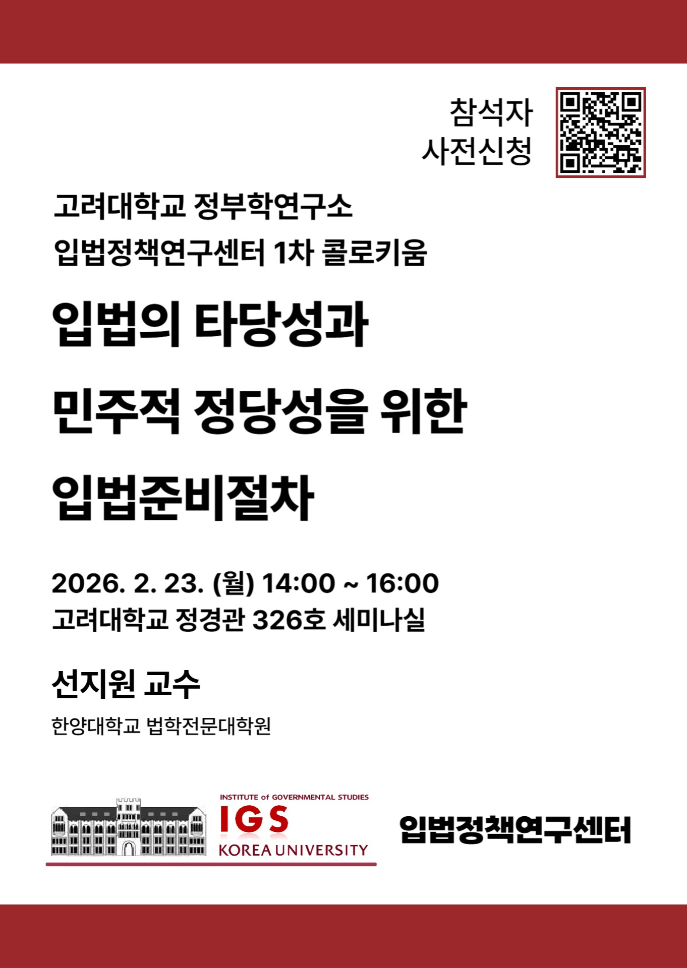 | 제목 | [입법정책연구센터 콜로키움] 입법의 타당성과 민주적 정당성을 위한 입법준비절차 |